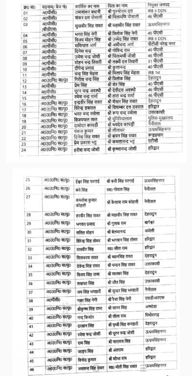 पदोन्नति पाने वालों में देहरादून, हरिद्वार, ऊधमसिंह नगर, नैनीताल, अल्मोड़ा, चमोली, उत्तरकाशी, पिथौरागढ़, बागेश्वर सहित कई जिलों तथा आईआरबी द्वितीय देहरादून, 31वीं, 40वीं और 46वीं पीएसी जैसी प्रमुख इकाइयों के कार्मिक शामिल हैं।