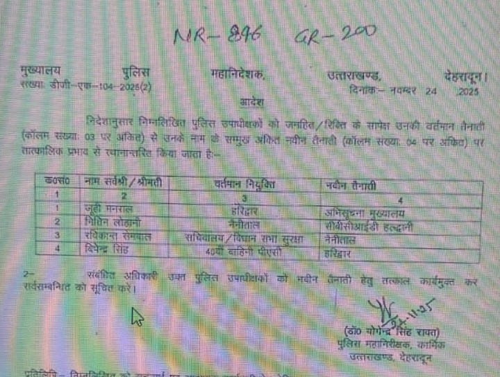 BIG NEWS – CO हल्द्वानी नितिन लोहनी सहित 4 पुलिस अफसरों के ट्रांसफर