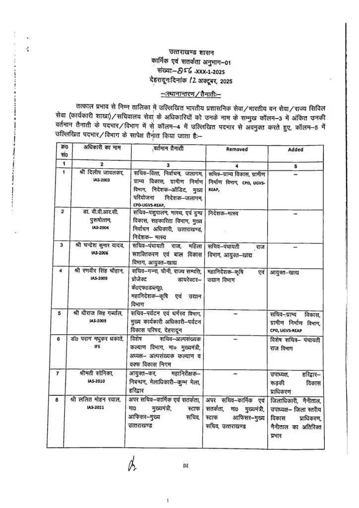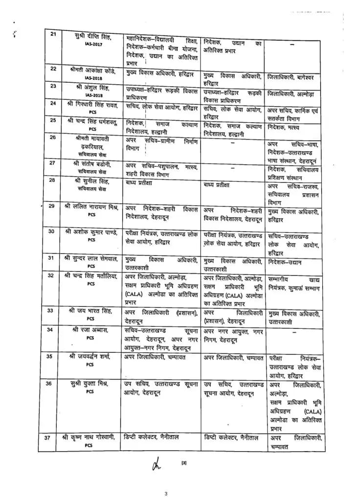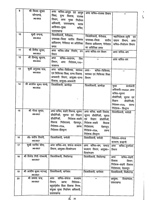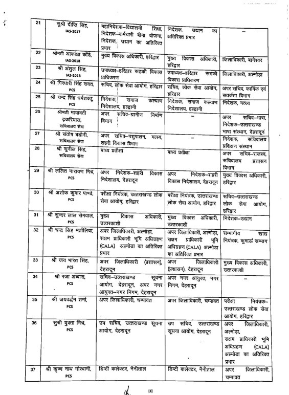 उत्तराखंड में बड़ा फेरबदल, कई जिलों के DM बदले गए..IAS – PCS के तबादले