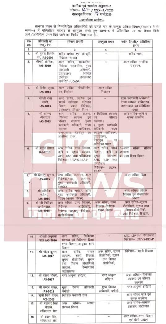 BREAKING : उत्तराखंड में बड़ा प्रशासनिक फेरबदल, कई IAS – PCS अधिकारियों के तबादले