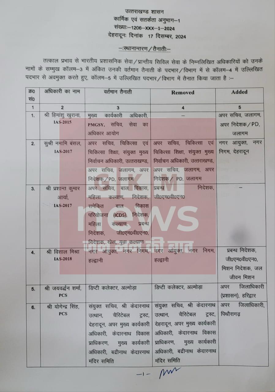 उत्तराखंड : IAS और PCS अधिकारियों के तबादले..