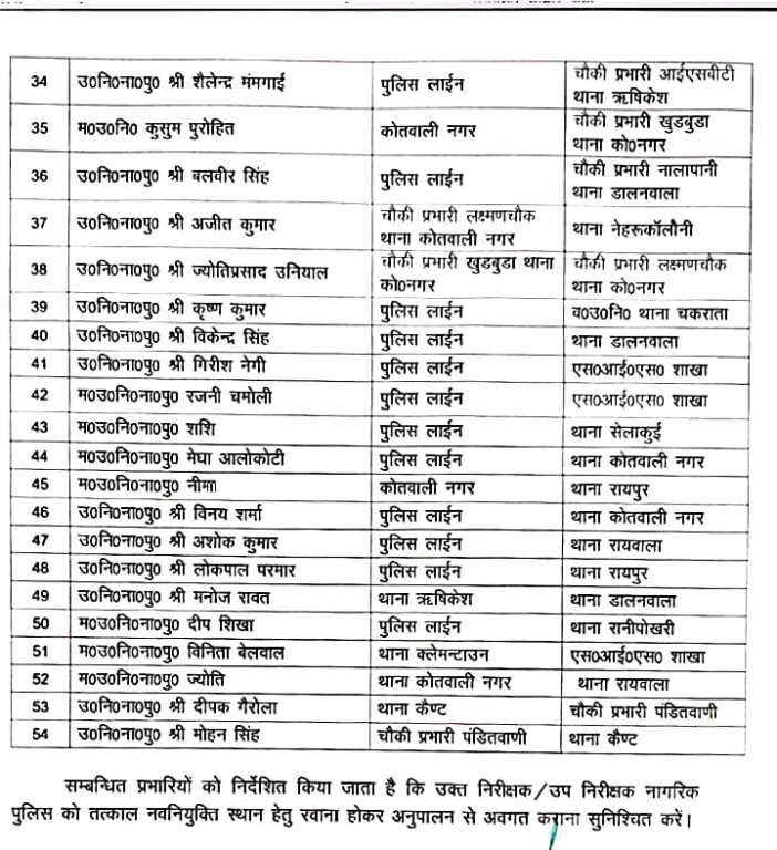 Uttrakhand : पुलिस महकमे में बम्पर तबादले_देखें किसको कहां मिली तैनाती