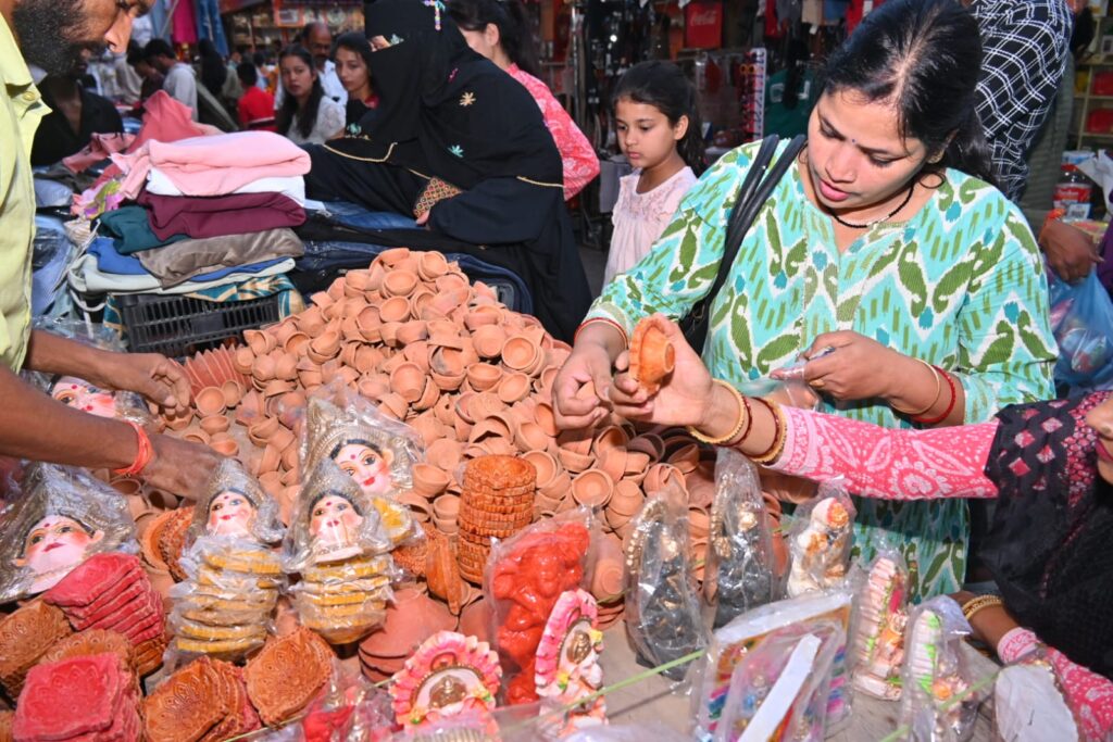बाजार में खरीदारी के लिए लोगों की भीड़ उमड़ रही है हर जगह हर दुकान पर खरीदारों का तांता लगना शुरू हो गया है उत्साह है उमंग है दीपावली पर्व की। ग्राहकों की आमद और धड़ाधड़ बिक्री ने कारोबारियों के चेहरे खिला दिए हैं।