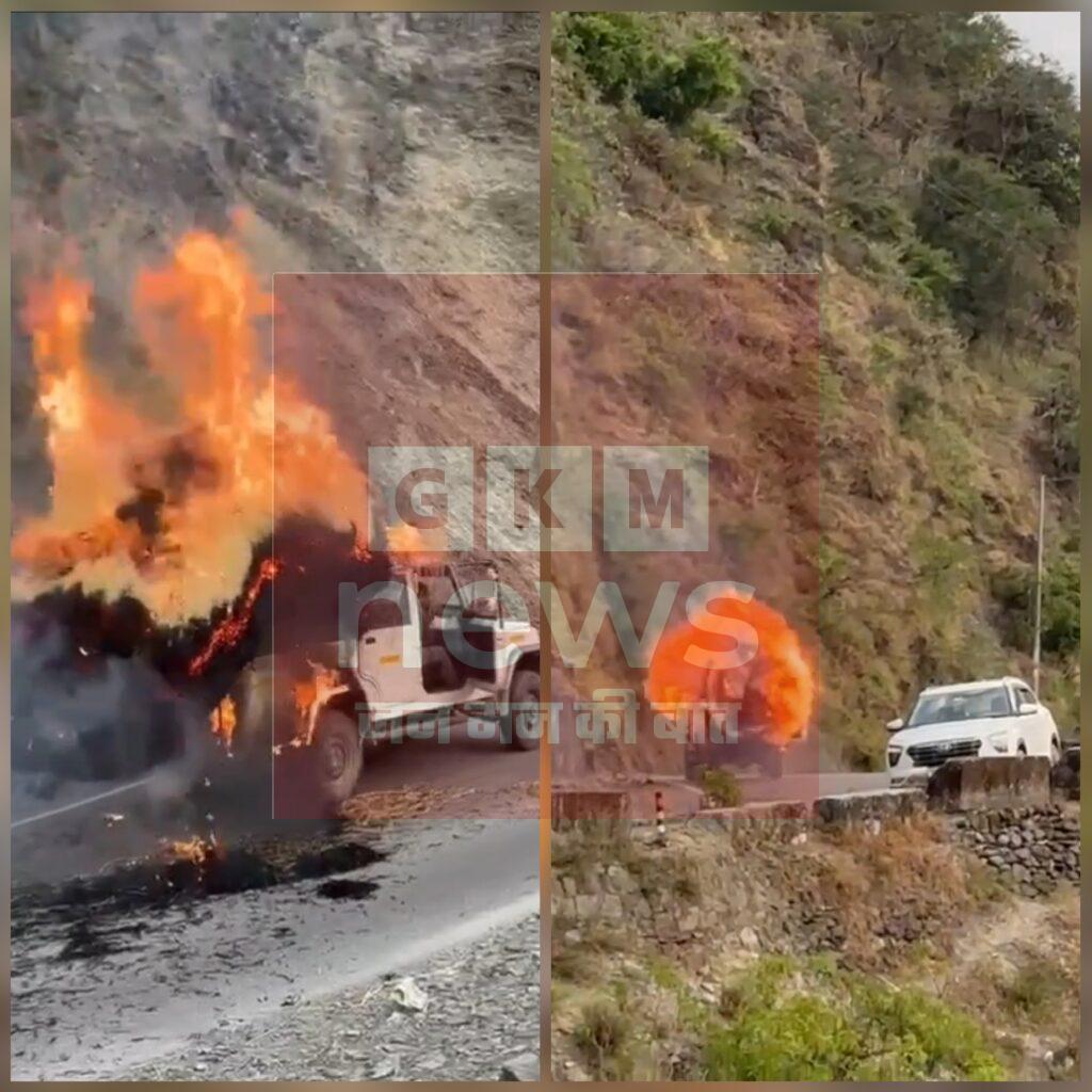 देहरादून : कालसी (उत्तराखंड)। गुरुवार को कालसी मोटर मार्ग पर एक चलती गाड़ी में अचानक आग लगने से हड़कंप मच गया। बताया जा रहा है कि गाड़ी पर पराली लदी हुई थी, जिससे आग ने देखते ही देखते विकराल रूप ले लिया।