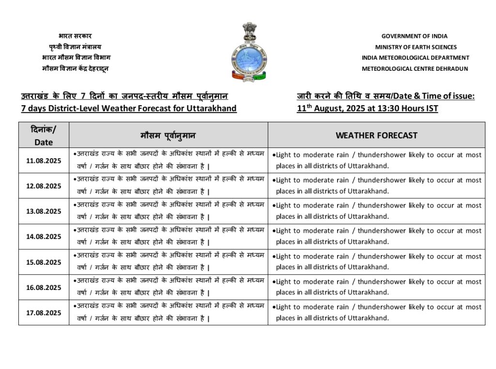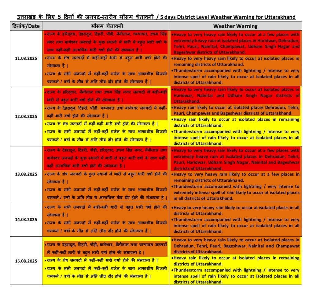 भारत मौसम विज्ञान विभाग के पूर्वानुमान के अनुसार, उत्तराखंड सहित जनपद नैनीताल में भी अगले 24 घंटों में भारी वर्षा होने की प्रबल संभावना जताई गई है। इस चेतावनी को देखते हुए,नैनीताल जिला प्रशासन पूरी तरह अलर्ट मोड पर है।