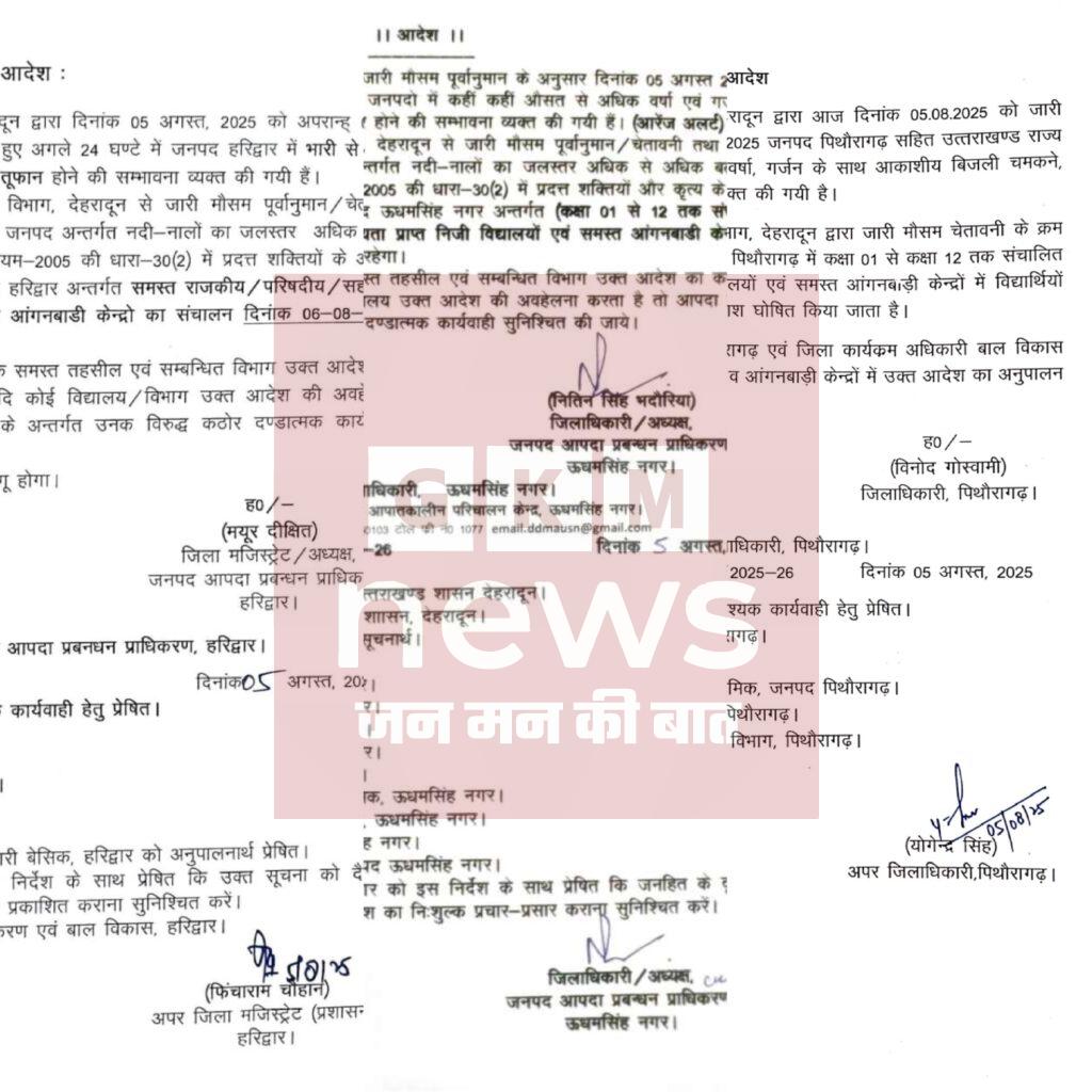 चंपावत में भारी बारिश की चेतावनी के चलते 6 अगस्त को स्कूल और आंगनबाड़ी केंद्र बंद रहेंगे