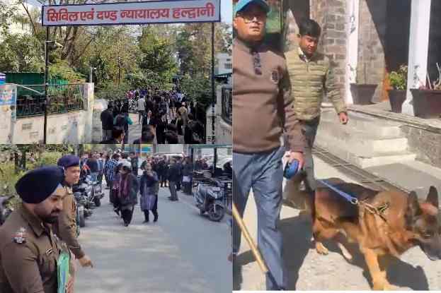 नैनीताल जिला एवं सत्र न्यायालय में बम स्क्वाड, डॉग स्क्वाड को सक्रिय कर चारों तरफ छानबीन की गई।