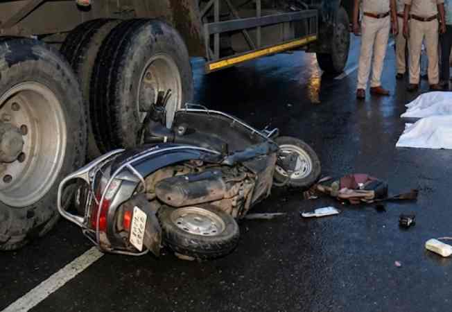 दर्दनाक हादसा: कंटेनर की चपेट में आए छात्र-छात्रा की मौत, चालक फरार..
