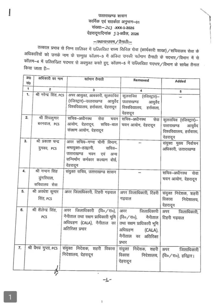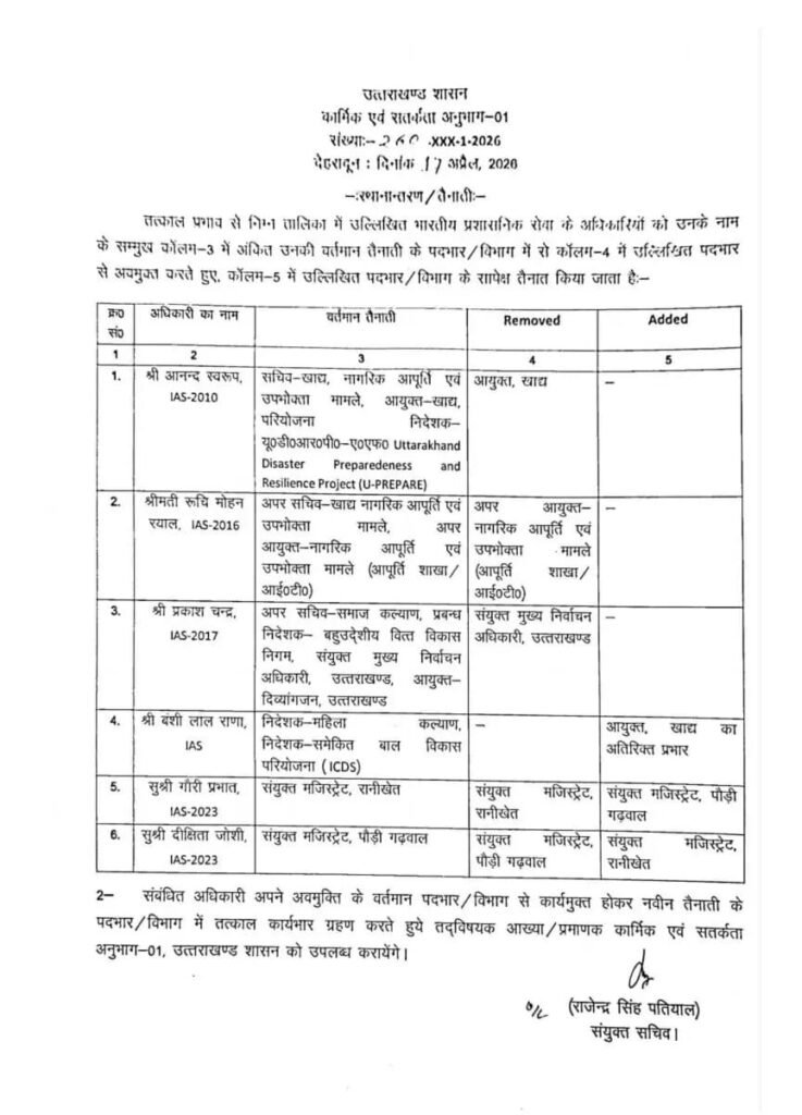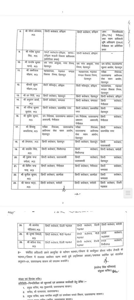 6 IAS -26 PCS अधिकारियों के तबादले_नैनीताल में नए ADM और डिप्टी कलेक्टर..