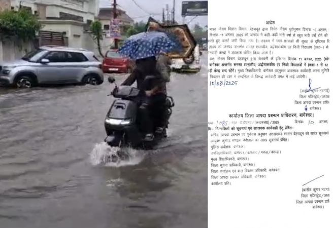 भारत मौसम विज्ञान विभाग, देहरादून द्वारा 11 अगस्त 2025 को बागेश्वर जनपद में कहीं-कहीं भारी से बहुत भारी वर्षा की चेतावनी जारी की गई है। सुरक्षा के दृष्टिगत जनपद के सभी शासकीय, अर्द्धशासकीय एवं निजी विद्यालय (कक्षा 1 से 12 तक) तथा आंगनबाड़ी केंद्रों में दिनांक 11 अगस्त 2025 (सोमवार) को अवकाश घोषित किया गया है। मुख्य शिक्षा अधिकारी को निर्देशित किया गया है कि आदेश का कड़ाई से अनुपालन सुनिश्चित किया जाए।