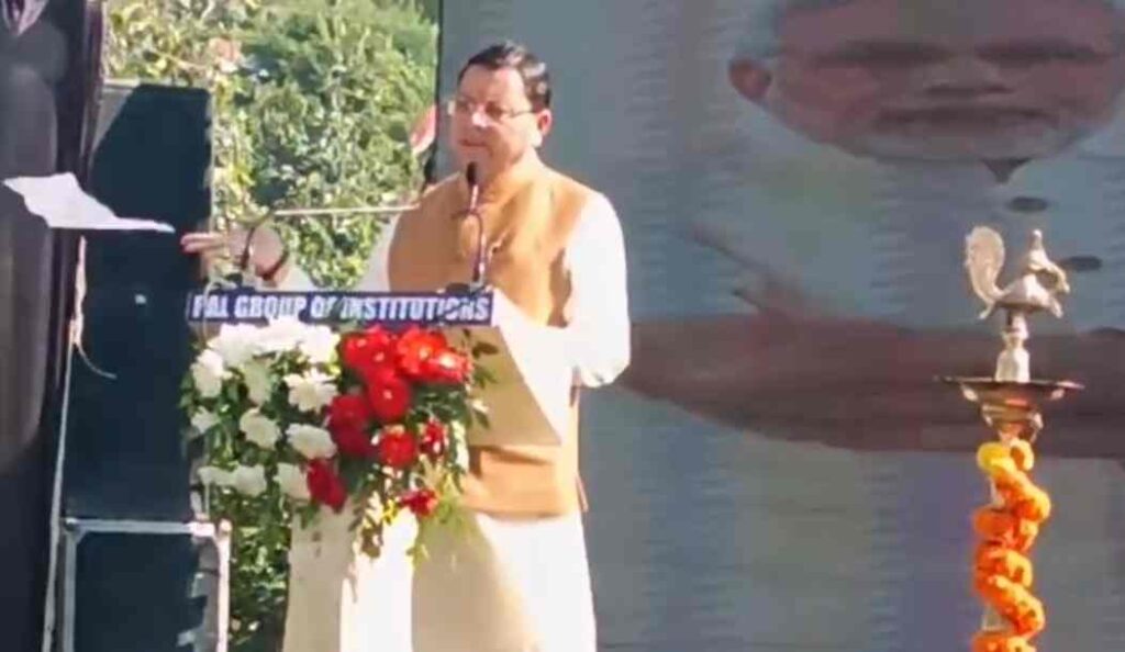 सीएम धामी आज दोपहर नैनीताल के भुजियाघाट में काया आयुर्वेदिक मेडिकल कॉलेज का शुभारंभ करने पहुंचे थे। इसी दौरान उन्हें भाषण के लिए उन्हें एक पर्चा दिया गया। सीएम ने मंच पर दो मिनट तक भाषण दिया।