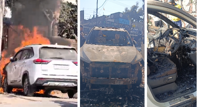 यह घटना एसकेएम स्कूल के पास आज सुबह करीब 10 बजे की बताई जा रही है। प्रत्यक्षदर्शियों के अनुसार, सड़क किनारे खड़ी इनोवा हाई क्रॉस (UK 04 AK 8085) से अचानक धुआं निकलने लगा, जिसके तुरंत बाद आग भड़क उठी।